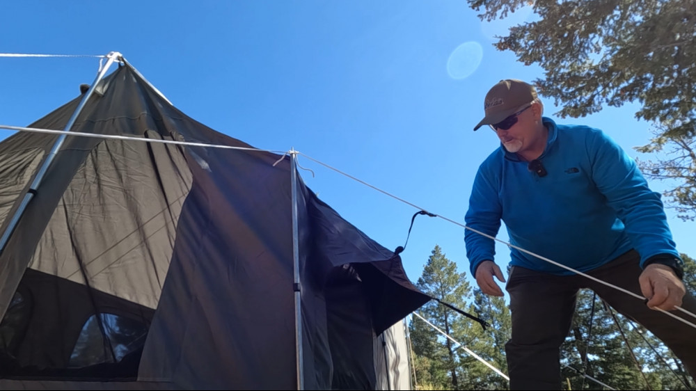 - Tie a Knot at the End of Both Guy Lines and Hook them Over the Upright Poles