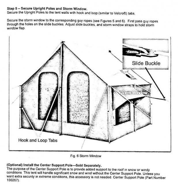 Take a little time before setting up the tent for the first time to make sure you understand how to assemble the window awning and at what time during the tent setup to do it, or you will be tying the Guy line know twice at the top of the upright poles.