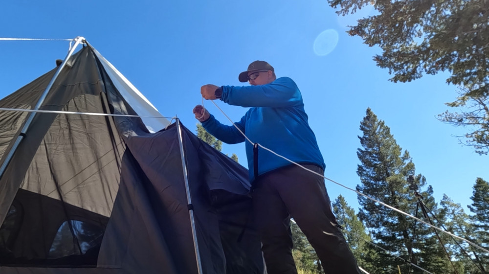 - Loosen the Long Strap and Slide it Down the Guy Line Until it is Tight